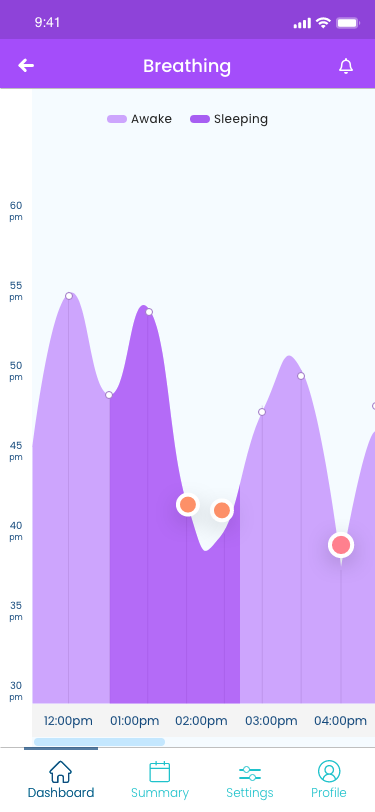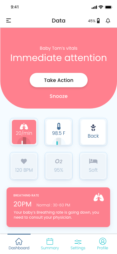 Alerts when Baby’s breathing stops for 10 seconds or is consistently outside pediatrician recommended limits.