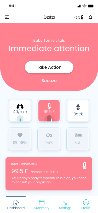 Alerts when Baby’s temperature exceed pediatrician recommended limits.