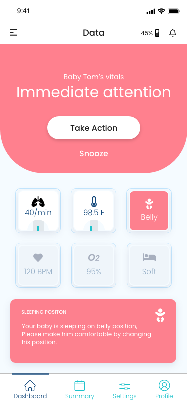 Alerts when Baby’s sleeping position changes to prevent accidental choking and suffocation.